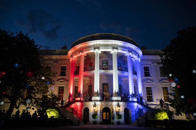 U.S. President Joe Biden and First Lady Jill Biden watch a fireworks display from the second-floor balcony of the Executive Residence of the White House during a Fourth of July event on the South Lawn in Washington, D.C., U.S., on Sunday, July 4, 2021.